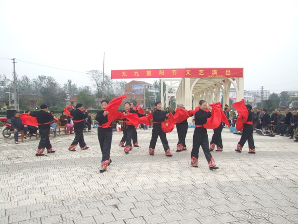 为隆重庆祝党的十七大召开,喜迎重阳节,龙亢农场各条战线上的40多名“演员”粉墨登场、联袂献艺,演出包括老年舞蹈、歌曲、戏曲、太极拳等自编自演的17个精彩节目。中青年演员们用清亮的歌声和优美的舞姿赞颂了党的光辉伟业,表达了敬老爱老助老的优秀传统美德;老年同志们用铿锵不老的唱腔和高亢激昂的旋律表达了对党的无限忠诚,展现了他们“人老不失戎马志,余热生辉耀九重”的光辉形象……演员们精彩的表演不时博得现场观众的热烈掌声,整场演出折射出了龙亢农场五谷丰登的喜乐年华与生动和谐的发展局面,热情讴歌了全场老年人在场党委坚强领导下过上的幸福美好的暮年生活。