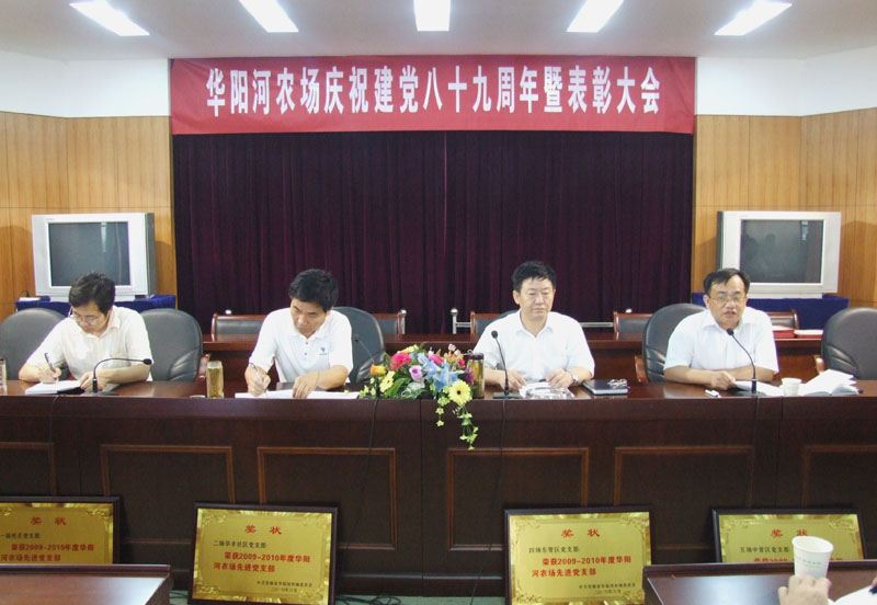 630,华阳河农场隆重召开庆祝建党89周年暨表彰大会。场党委全体委员出席会议,各分场党政班子成员、场直单位副科级以上党员干部、机关全体党员及全场受表彰的先进集体代表和个人共70余人参加会议。