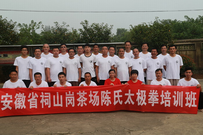 77817,祠山岗茶场依托河南陈家沟国际太极院广德分院平台,聘来正宗拳师,利用职工群众晨练时间举办了陈氏太极拳培训班。