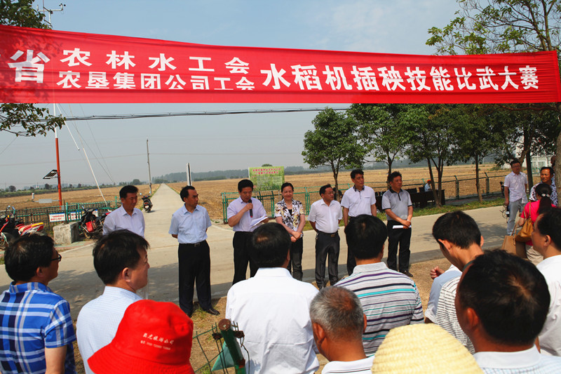 为助推全省工会开展“中国梦·劳动美·安徽篇章”主题劳动竞赛活动,加强“学习型、技能型、创新型”农垦职工队伍建设,6月14日,省农林水工会、省农垦工会联合在大圹圩农场成功举办了“水稻机插秧技能比武大赛”。
