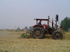 另外,一台秸杆粉碎机每天可粉碎麦茬200多亩,费 用8元/亩。麦茬粉碎是龙亢农场推行免耕农业、可 持续发展农业的一个新尝试,其经济和生态效益相 当可观,同时实现了边种地边养地的良性循环。